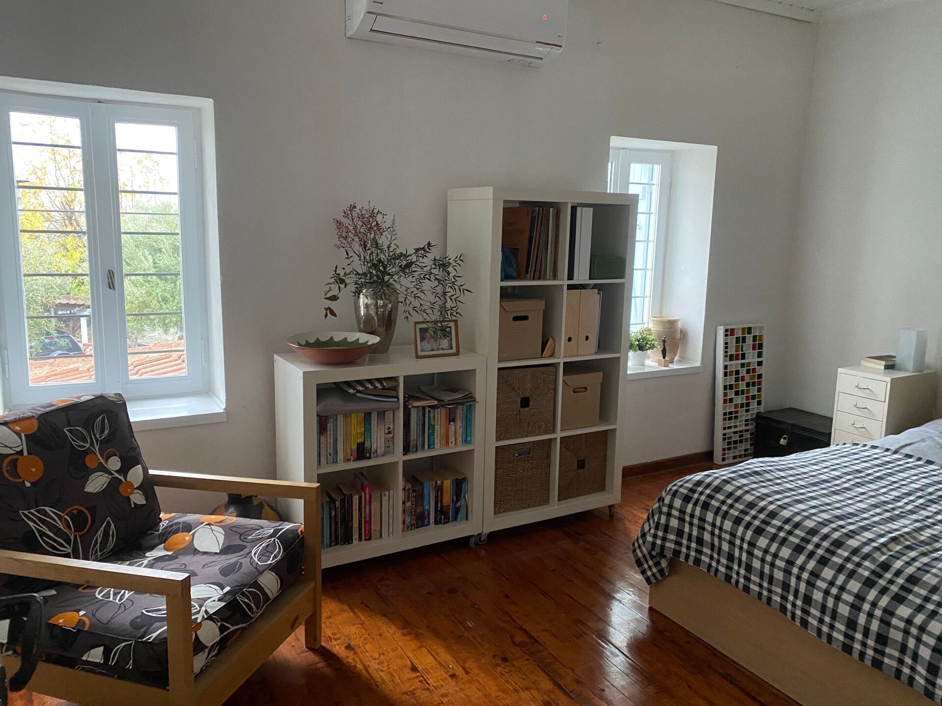 Upstairs there are three double bedrooms. This charming and airy room has a queen sized bed and. air conditioning.