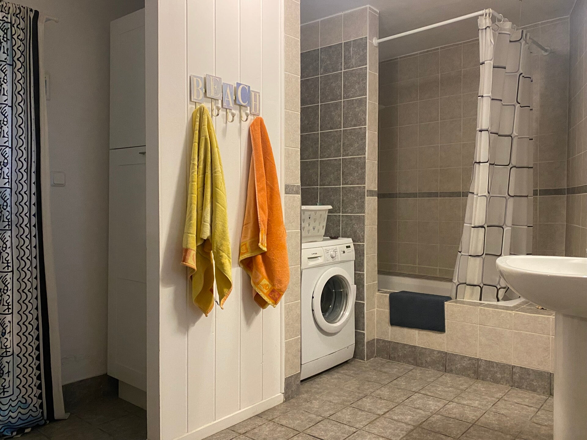 There are three bathrooms, the large main bathroom is on the upstairs floor and it has a shower/bath, a washing machine and access to a large balcony which is great for drying clothes.